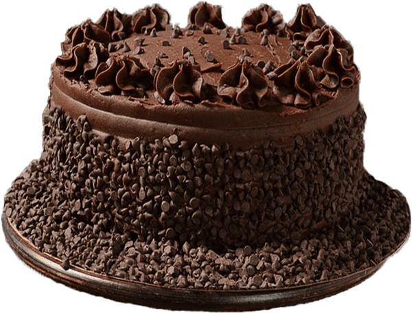 Double chocolate chip cake, chocolate frosting, coated in sweet chocolate chips.