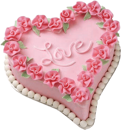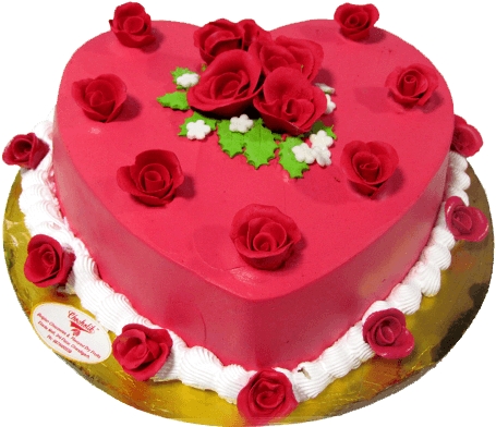 Our red rose heart-shaped cake. Your choice of milk or dark chocolate cake. Your choice of milk, dark, or white chocolate frosting. Decorated with vanilla frosting roses and designs.